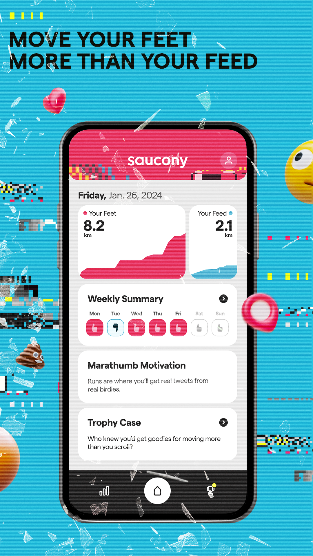 your thumb scrolls three marathons a year... yeah, you heard that right. so, we built an app to get you moving your feet more than your feed.